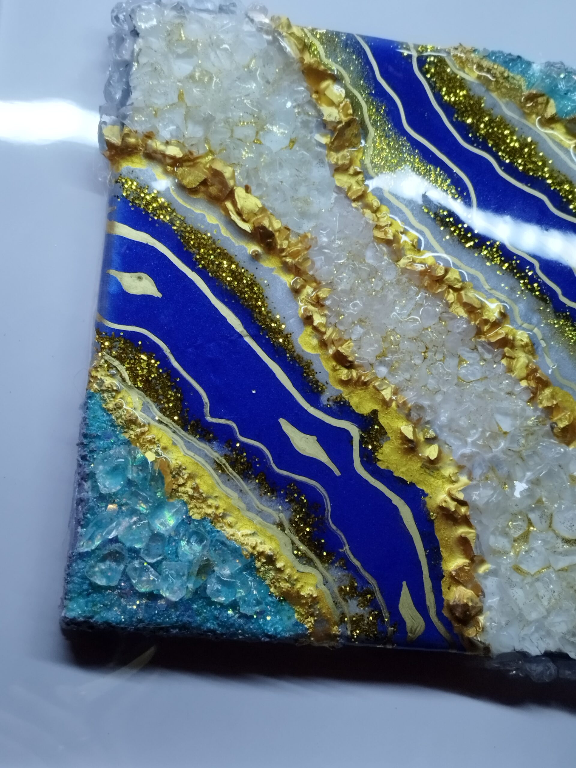 This resin art piece not only serves as a stunning decor item but also makes an ideal gift for art lovers, housewarmings, or special milestones. Surprise your friends and family with a gift that combines modern artistry with high-quality materials. Our Géode resin art work in blue and gold is perfect for birthdays, anniversaries, or as a thoughtful gesture to elevate someone’s space. With its elegant design and intricate details, it is sure to be cherished for years to come.