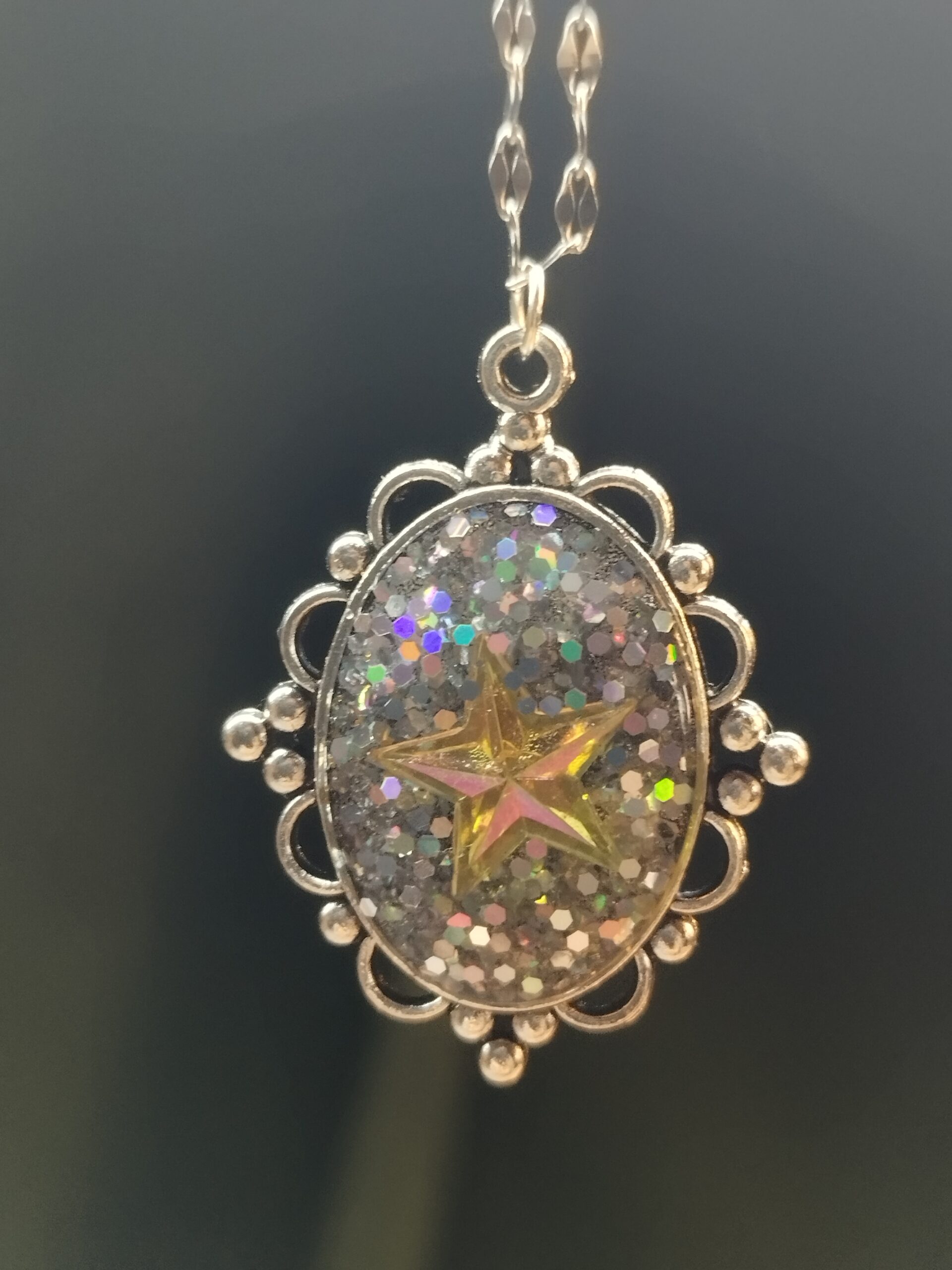 The intricate design of the Silver Star Bezel Necklace showcases gorgeous little flower embellishments that add a whimsical touch. Each flower glimmers with a gold shimmer, creating a visual delight that catches the light beautifully. The attention to detail in the craftsmanship ensures that this necklace not only looks stunning but is also durable for everyday wear.